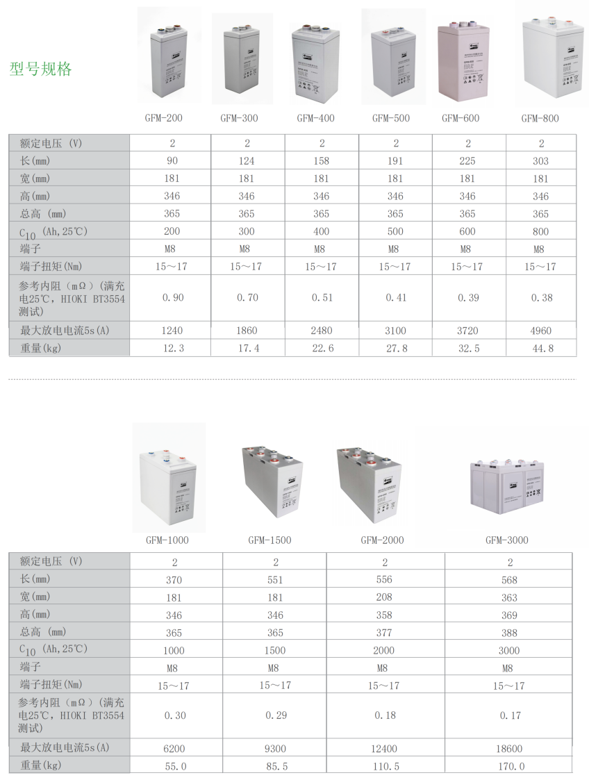 正板栅采用特殊多元合金,有效的防止了电池早期容量损失,浮充使用和循环使用,寿命长